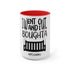 This custom two-tone mug is here to accommodate all your favorite pick-me-up elixirs in style. Its durable ceramic build is microwave & dishwasher safe, as is any printing that goes on to these mugs. These custom dual-color mugs are available in 2x sizes: 11oz and 15oz, as well as in 3x different color schemes: white with red inside, white with pink inside, and white with black inside.